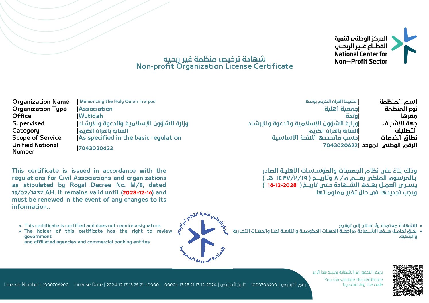 - التعليم المتخصص لتلاوة وتحفيظ القرآن الكريم للفئات الاجتماعية.